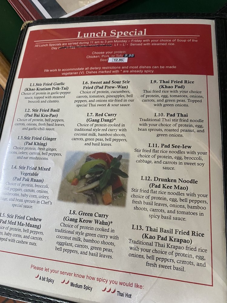 Thai Basil Express Springdale Menu